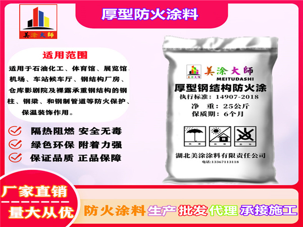 1、厚型钢结构永兴防火涂料是以无机绝热材料为主要成分组成,具有不腐蚀钢材、不与任何防腐底漆起化学反应、无刺激性气味、涂层质量轻(结构荷载重量相对也轻)、单位涂覆面积大、遇火时不产生烟气、不释放有害气体等特点。因此适用于各种新建、扩建和改建的工业与民用建筑工程中钢结构承重构件的防火涂装及防火保护,是一种理想的防火隔热涂料。